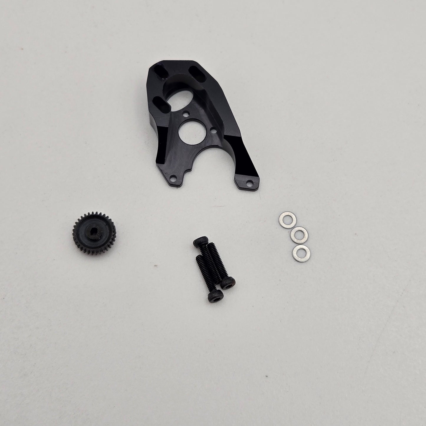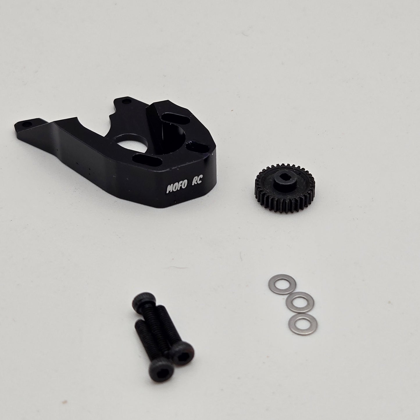 12mm mounting pattern Aluminum Race Mount, This uses our Tiny Spur gear, It is a direct fit onto the scx24 / ax24 transmission. Purchase as the mount only, Or the Mount and Tiny spur gear. Or tiny spur only.