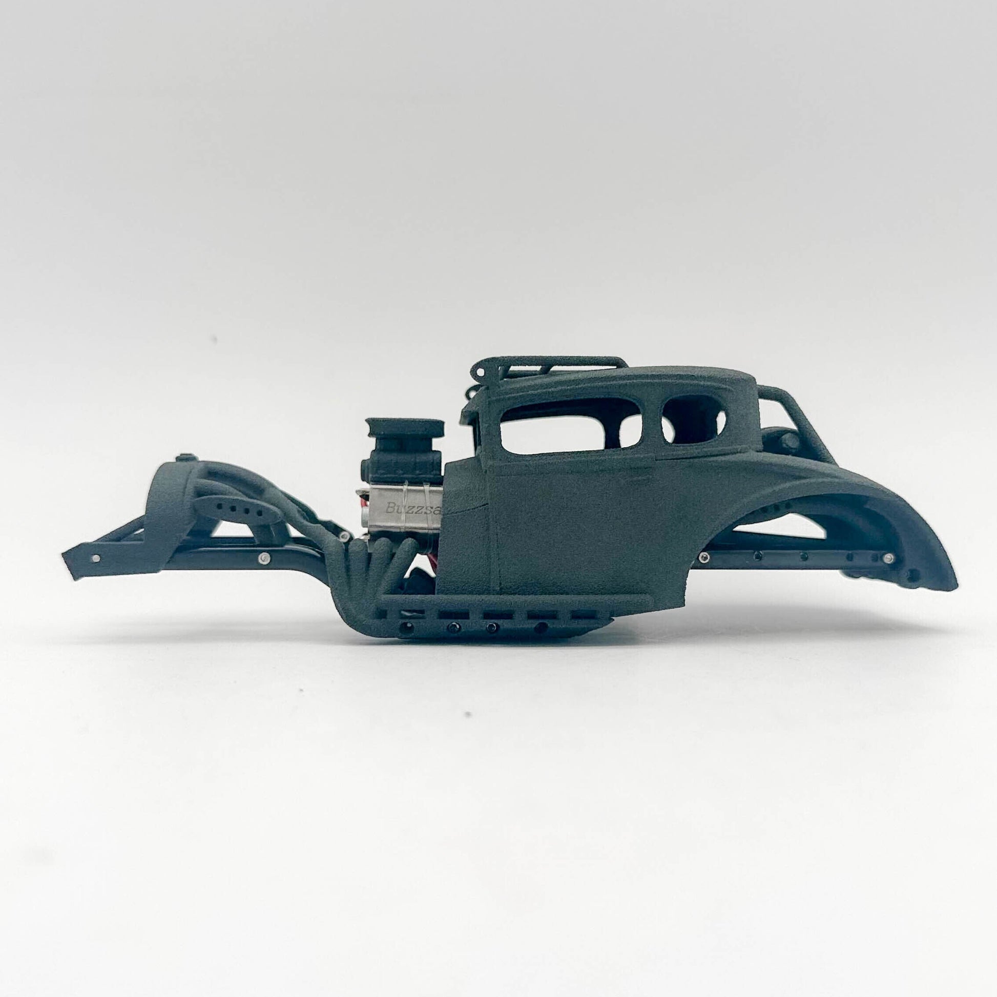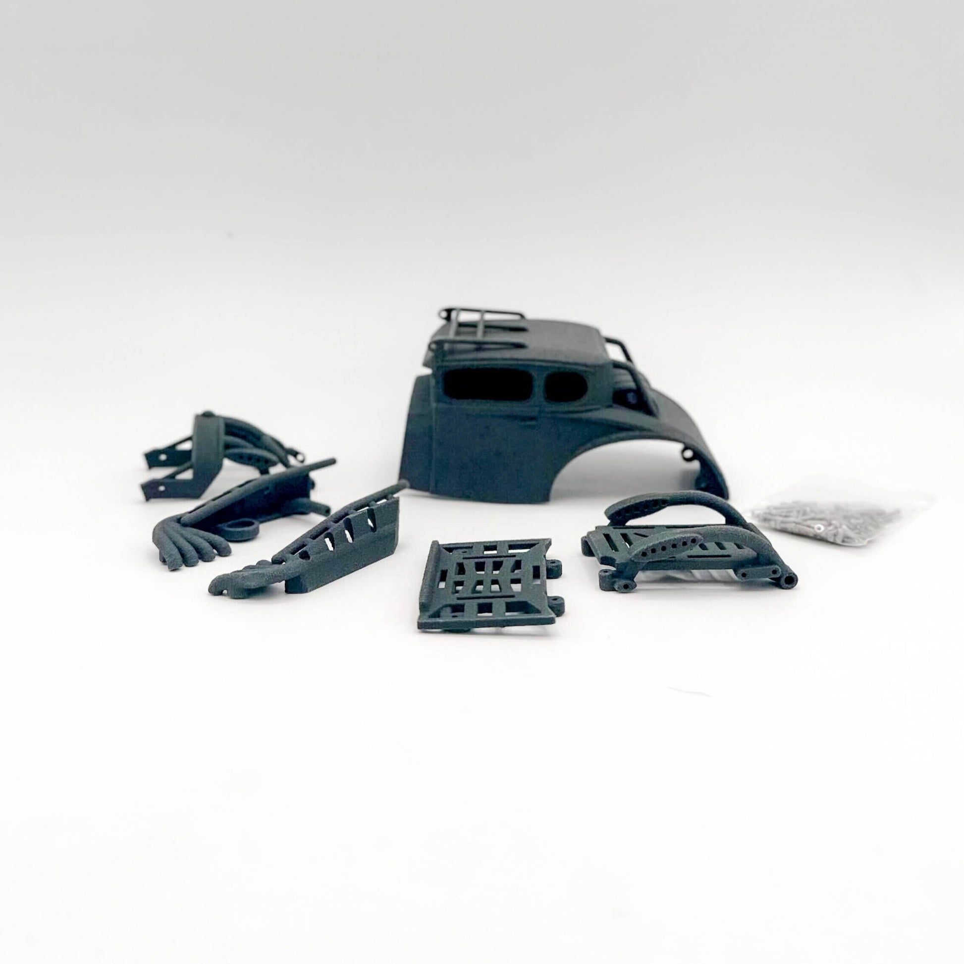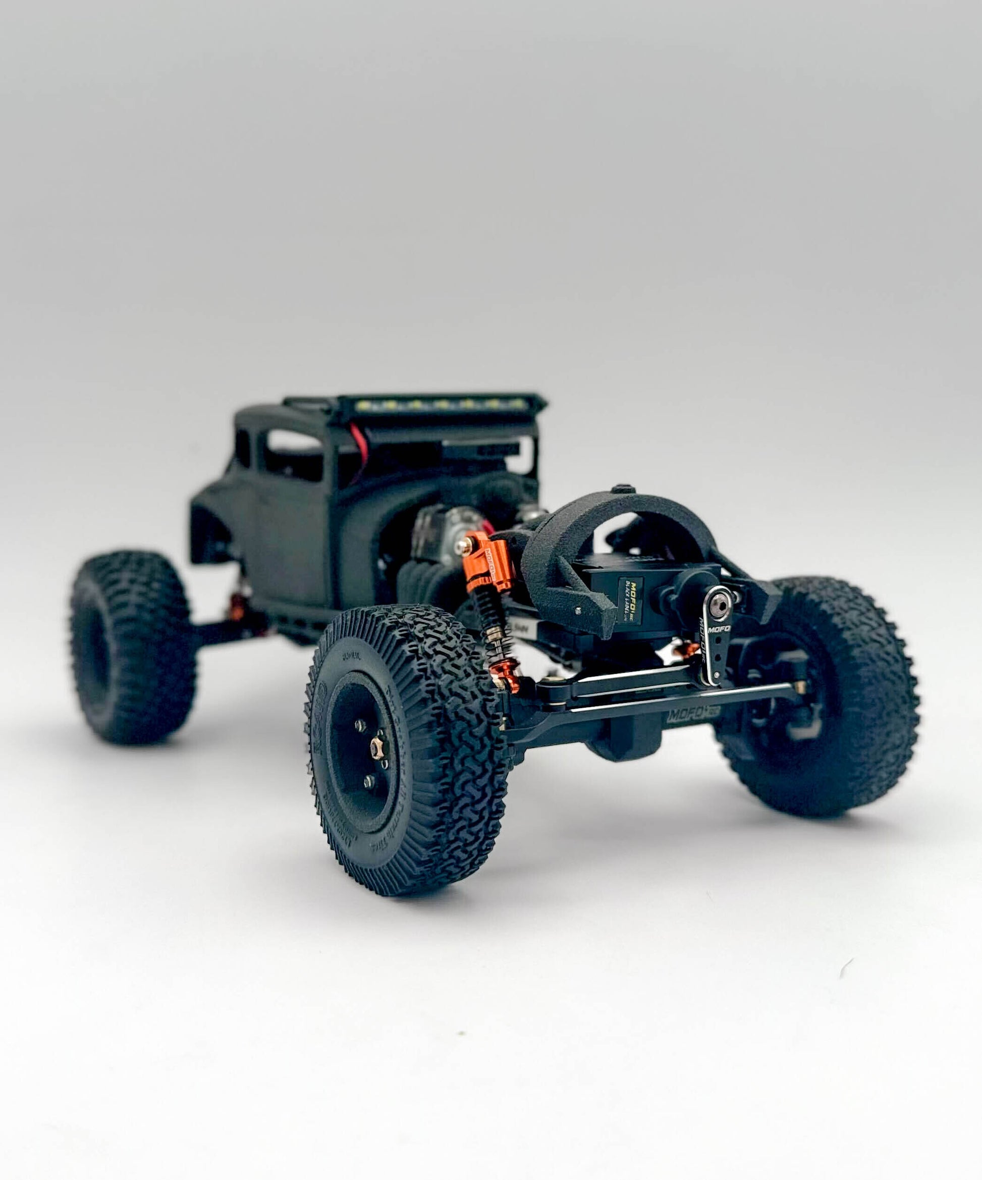 The Mofo RC Rock Rat 2.0 is where Rat Rod meets Mad Max offroad styling. Utilizing the optional dual transmission, get a faux V8 look with the motors acting as valve covers. It includes all the plastic parts necessary to convert a stock SCX24 standard length chassis into an awesome Rat Rod. Capable of running our optional dual motor transmission or any of our other motors such as our Pancake line of motors with a standard SCX24 transmission. The body is completely customizable and paintable to create your own look.